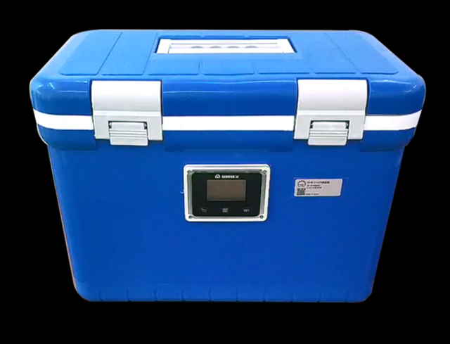 内外表面材料为塑料,中间保温层PU一体发泡成形,箱盖发泡硅胶条密封,保温性好;蓄冷盒放置设计于顶部,使箱体内温度均匀,冷藏效果佳。